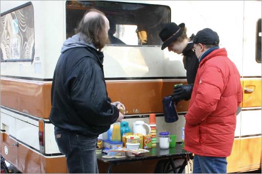 Eine Zeitung braucht natürlich auch einen Vertrieb und eine besondere Zeitung, wie die motz eine ist, braucht einen ganz speziellen Vertrieb. Über die normalen Aufgaben eines Zeitungsvertriebes hinaus erfüllen die Vertriebsstandorte der motz eine wichtige soziale Aufgabe als Treffpunkt und Kommunikationszentrum für von Obdachlosigkeit und Sucht Betroffene. An drei Vertriebsstandorten, dem Wohnmobil am Nollendorfplatz, der Notübernachtung in Berlin Friedrichshain und in der Zossener Straße in Kreuzberg gibt es für Betroffene neben einem Kaffee und einen Dreh aus der Tabakbüchse auch einen Ansprechpartner. Für 40 Cent Unkostenbeitrag pro Exemplar können sich Betroffene mit Zeitungen eindecken. Wer neu bei der motz ist, bekommt ein paar Freiexemplare als Starthilfe und für die alten Hasen gibt es meist morgens, als Starthilfe für den Tag, ein paar Zeitungen auf Kommission. Ein ganz besonderes Dankeschön möchten wir bei dieser Gelegenheit an die Gruppe junger und engagierter Christen aus dem Wedding richten, die seit Jahren bei jedem Wetter, samstags ehrenamtlich und zuverlässig selbst mitgebrachte Lebensmittel, frisch belegte Brote und Kaffee ausgibt. Dieser "Service" ist im Laufe der Jahre zu einem festen und von den Betroffenen gern angenommen Bestandteil des motz-Vertriebes geworden. |